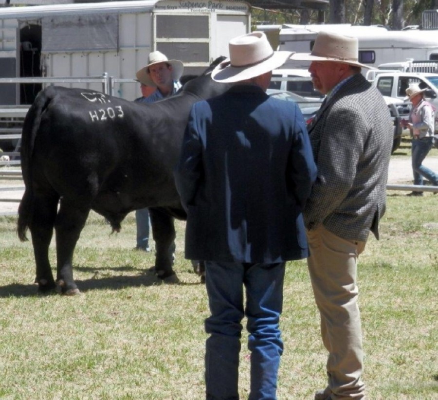 2014 Stanthorpe Show saw Colin judging in the Beef Ring instead of showing, so a different perspective and for the rest of us a much more relaxing day was had- watching Colin do all the hard work in conjunction with his junior judge for the day. Tenterfield Show the following week saw Colin back in the ring with his 6 mth old Final Product bull calf Alumy Creek J33 and part of the winning Interbreed Breeders group.