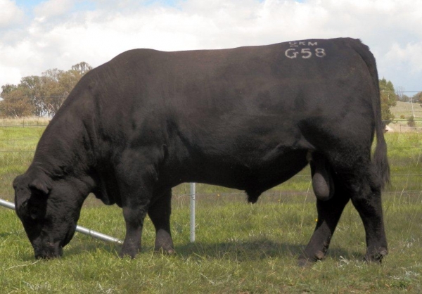 We are pleased to offer for sale a quality 3yo Angus Bull Alumy Creek Godfather G58 Lot 13 at the Casino Angus Brangus Sale at Casino Saleyards 10th May 2014 11am start. We used this powerfully muscled quiet natured bull as a back up sire last season. He is a SAV Pioneer son- they have sold well for us and been sale toppers around the country. Great nature, easy to work with, good structure and heavy muscle shape with easy doing and finishing ability -just what is needed when the season gets tough. This bull has top EMA, positive fats and terrific 200 day growth EBVs as well as good Heavy Grassfed and Shortfed Domestic $ Indexes. He will suit those wanting more market flexibility for their calves with heavier vealers, and added MSA compliance for grassfed or domestic short fed feeder steers. He is bred from a very good Vermillion Yellowstone x Booroomooka Theo cow- genetics sought after for great female traits. Coupled with the positive fats and top 1% fertility traits he should also breed top replacement females with calving ease for heifers or cows.