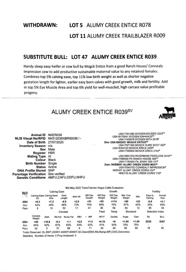 Substitute Bull - Lot 47 ALUMY CREEK ENTICE R039