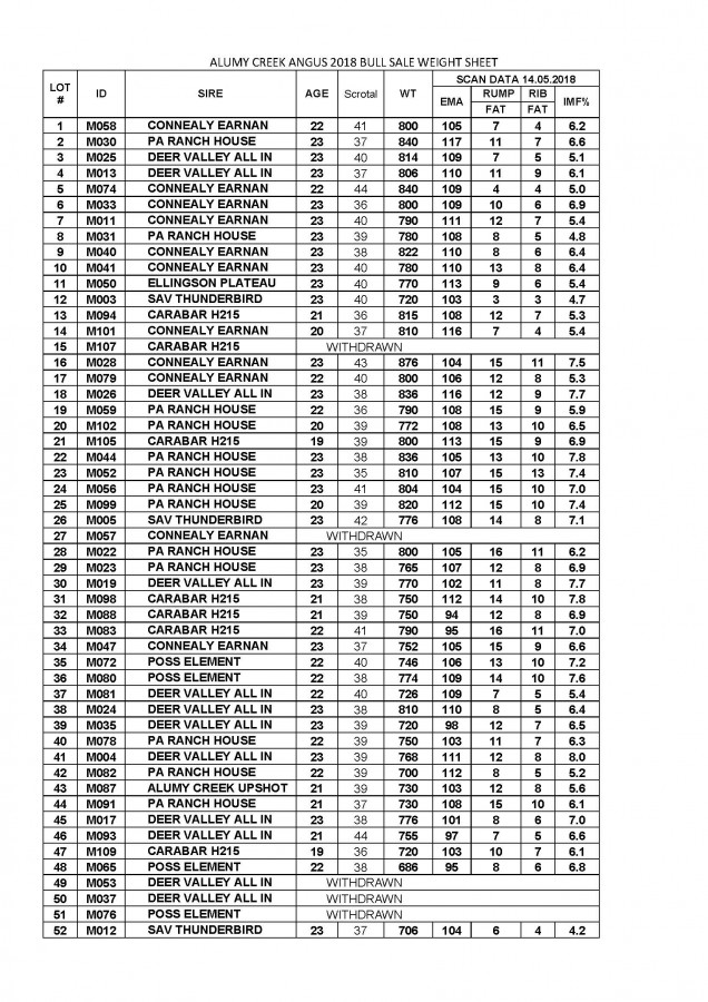 The 2018 Alumy Creek Angus Bull Sale WT & SCAN Sheet is now available on the Bull Sale Page and also lists the withdrawals. ... read more